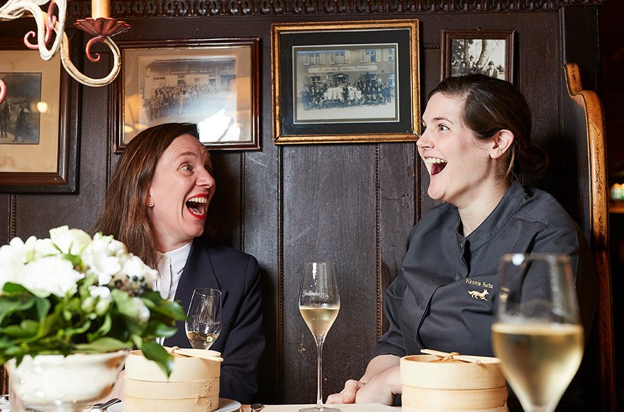 Die feine Perlage und vollendete Eleganz unseres Grand Brut war eine wunderbare Ergänzung zu Pâté en croûte von Kaninchen, Wachtel und Reh mit knuspriger Kräuter-Praline und Gänselebersauce sowie Vikis Wildschwein Dim Sum mit Sojasauce.