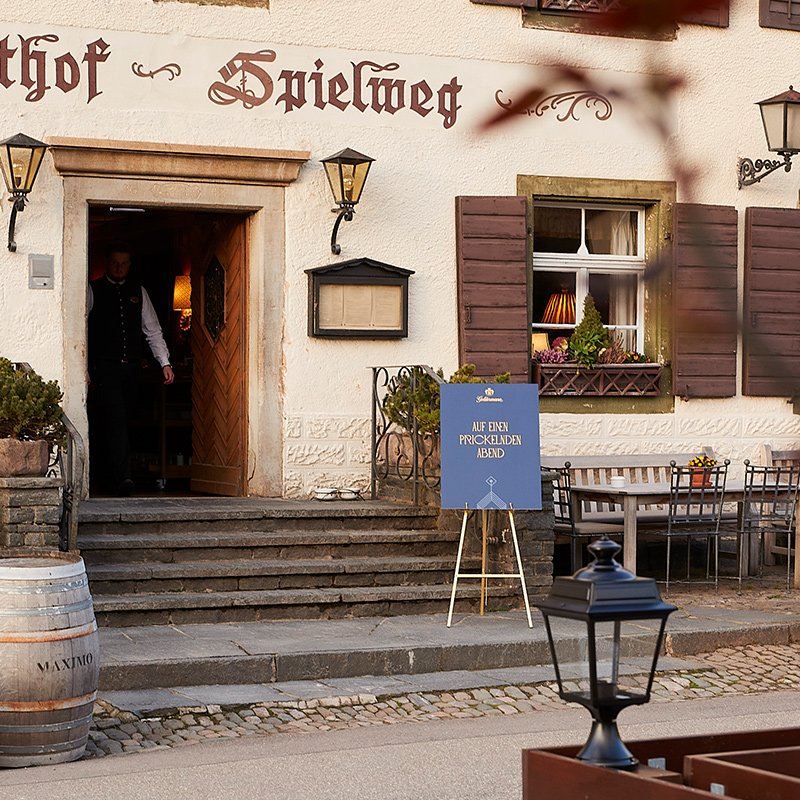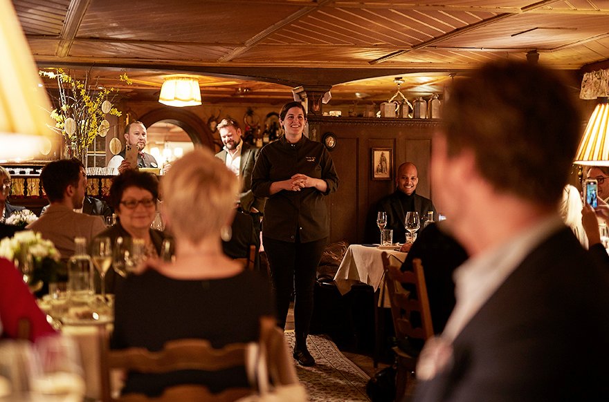 Das kulinarische Erlebnis setzte sich für die Gäste nach einer kurzen Shuttlefahrt im Romantik Hotel Spielweg im Münstertal fort. Zwischen Aperitif, dem mehrgängigen Menü und unseren ausgesuchten Cuvées warteten dort noch andere Highlights des Events. Für poetischen Genuss sorgte der Poetomat: Bei der beliebten Poesie-Performance aus Hamburg werden aus zufälligen Worten Gedichte improvisiert, in diesem Fall natürlich mit thematischem Bezug zu Schaumwein. Die kreativen Schöpfungen sorgten für viel Erheiterung und ergänzten die prickelnde Erinnerung an den Tag.